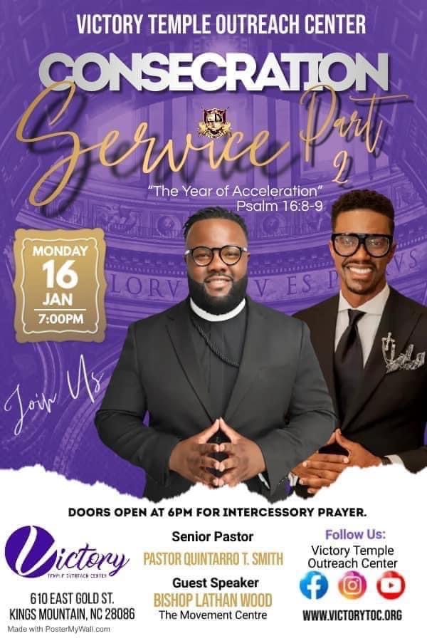 Victory Temple Outreach Center 830 Church Street, Kings Mountain, NCLife Enrichment Hour - 11am Praise Celebration - 12Noon